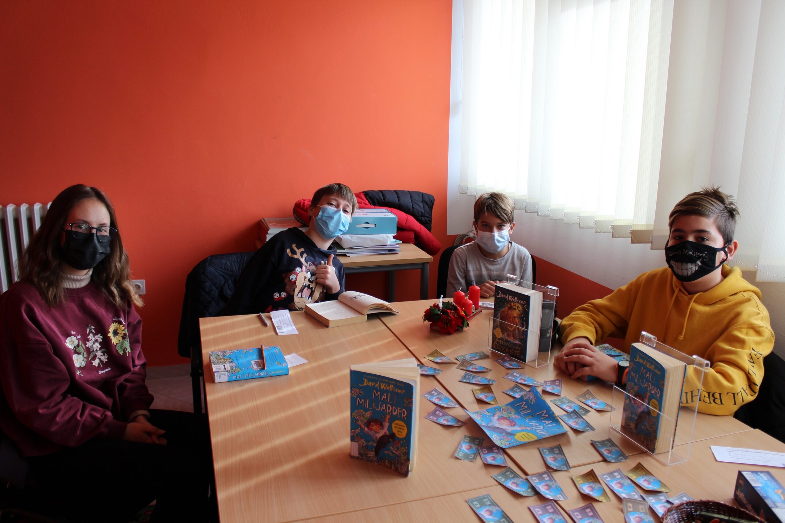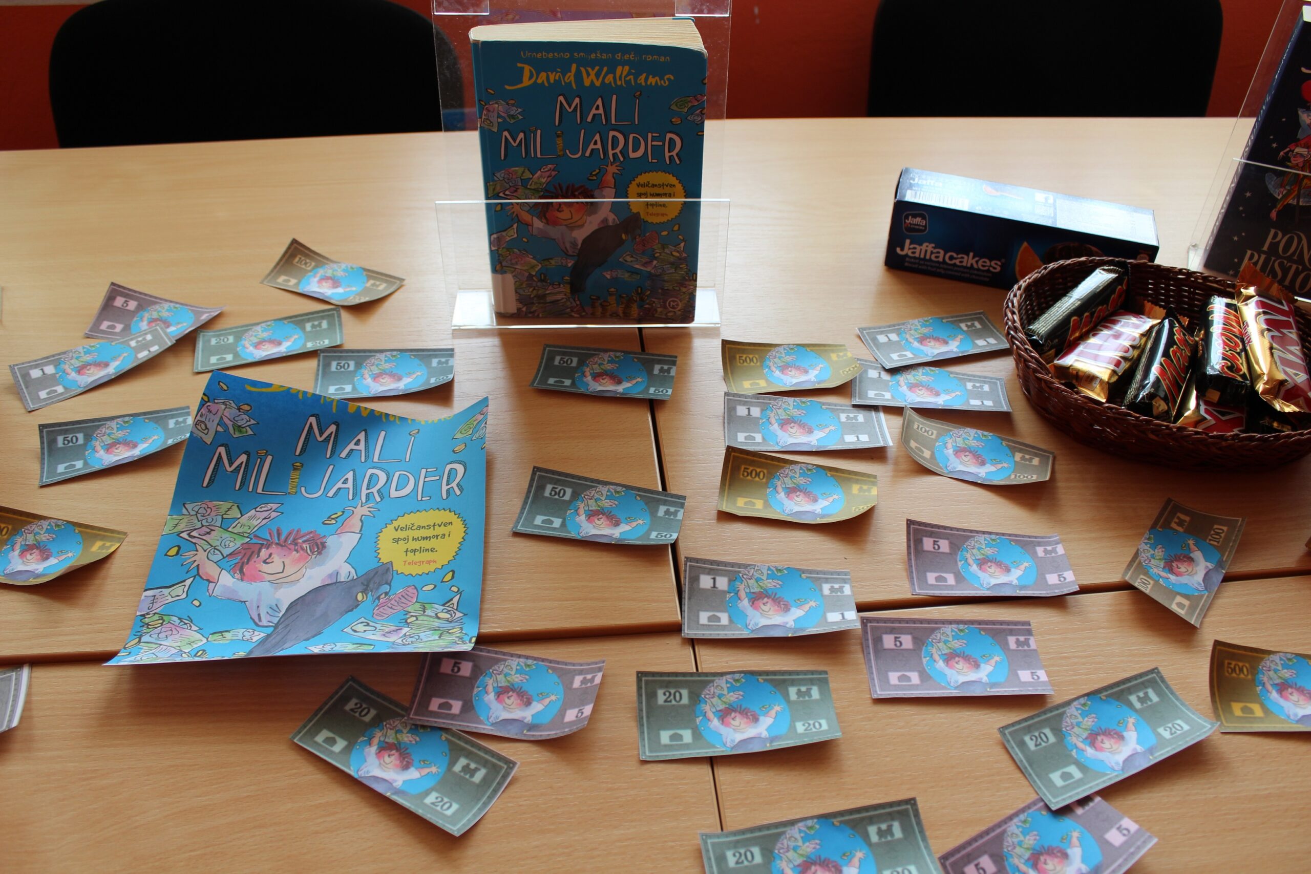 Na susretu čitateljskog kluba nije nas bilo puno, ali smo se dobro zabavili, puno razgovarali, a i pojeli koju čokoladicu. Našli smo se u knjižnici, mala ali odabrana ekipa: Marisa Miočić, Dorijan Jurešić, Frane Mišković i ja, Roko Lazanja. Susretu je prisustvovala i učiteljica Patricia Novačić Juričić. Razgovor je vodila učiteljica Ana Lisica, a knjižničarka Irena Stojanov pobrinula se za uređenje knjižnice i čokoladice koje se spominju u knjizi.